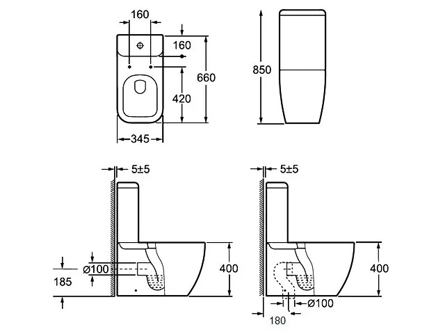 a tartály vízbekötése jobb vagy bal oldalon felül lehetséges, bekötési magasság: 75,5 cm