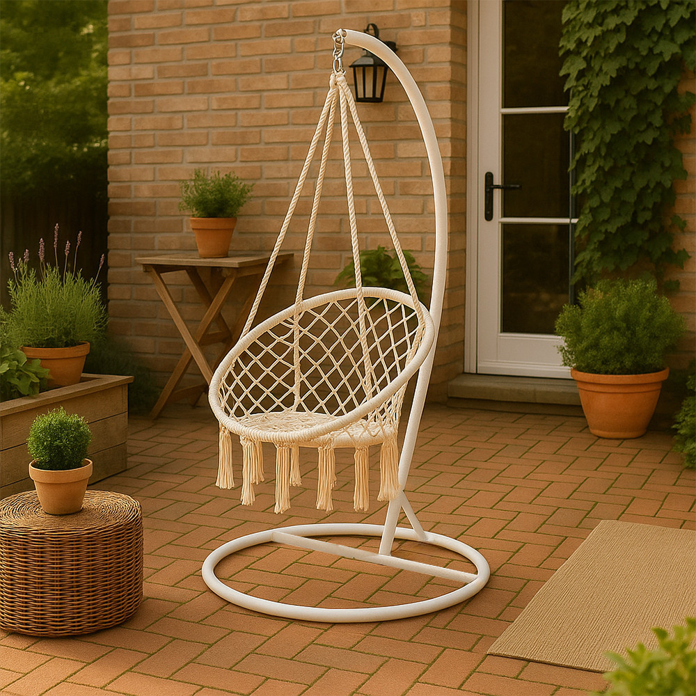 Fehér függőfotel állvány – stabilitás és szabadság, bárhol