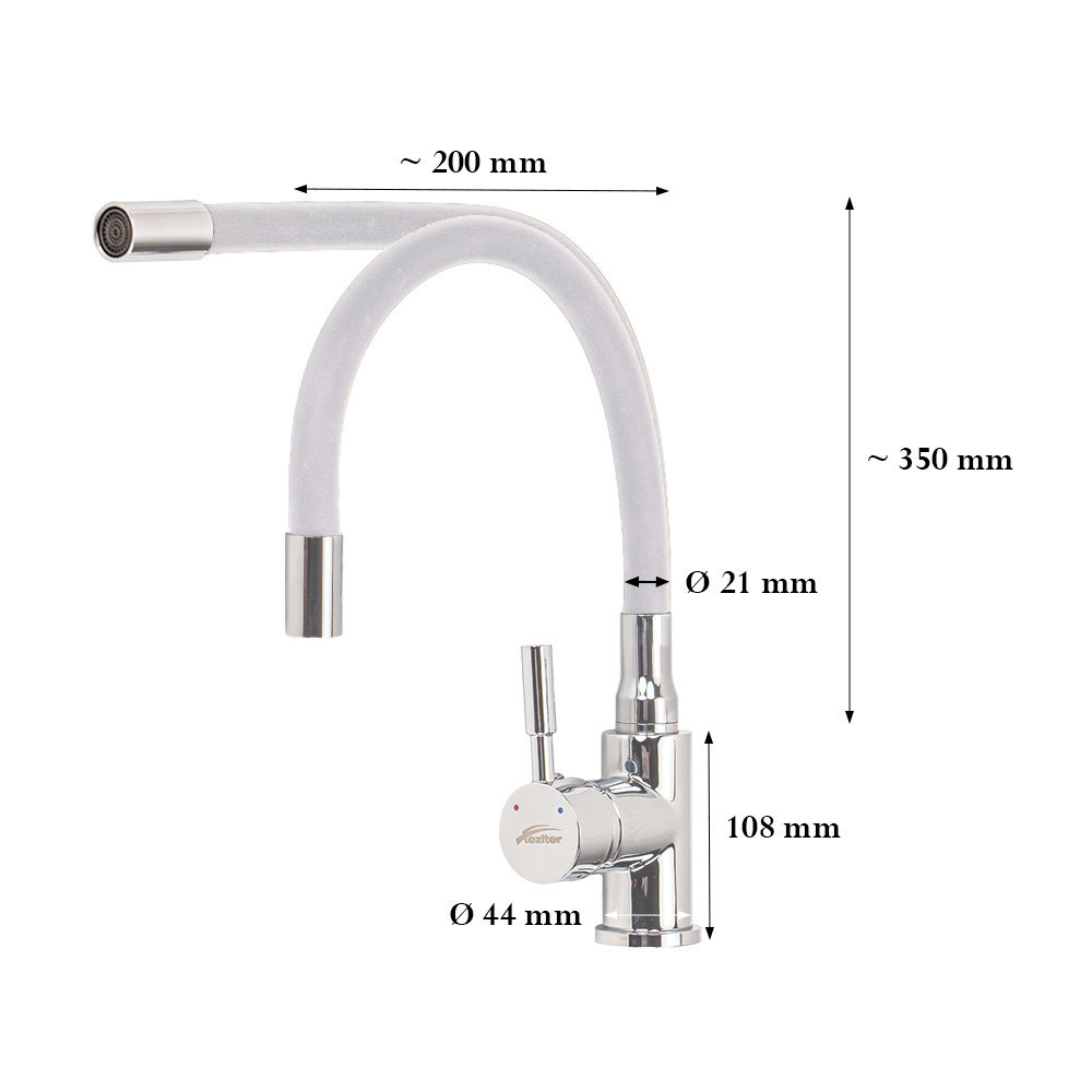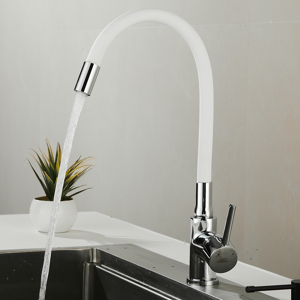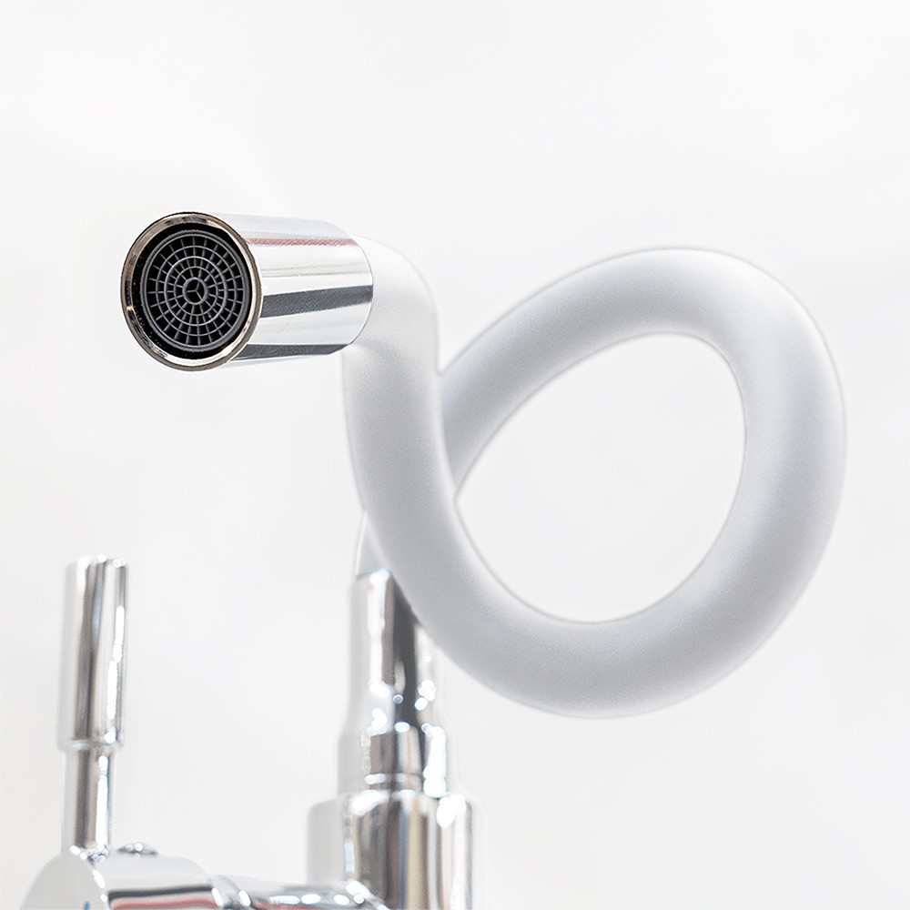 A szilikon bevonatú flexibilis cső lehetővé teszi, hogy a kifolyó formáját és magasságát szabadon alakítsd.