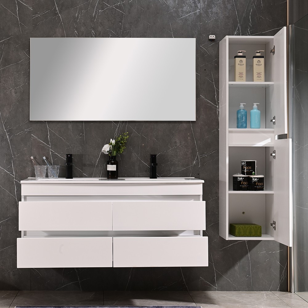 A fürdőszobabútor rendelkezik négy tágas fiókkal ahol kényelmesen elférnek a fürdőszobai pipere eszközök. Kompakt kialakítása miatt kisebb fürdőszobák berendezésére is alkalmas, például panel lakásokban.