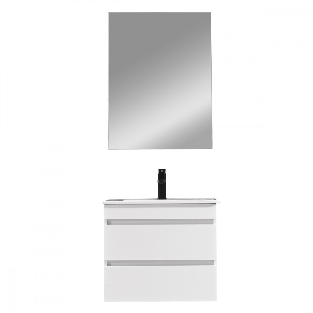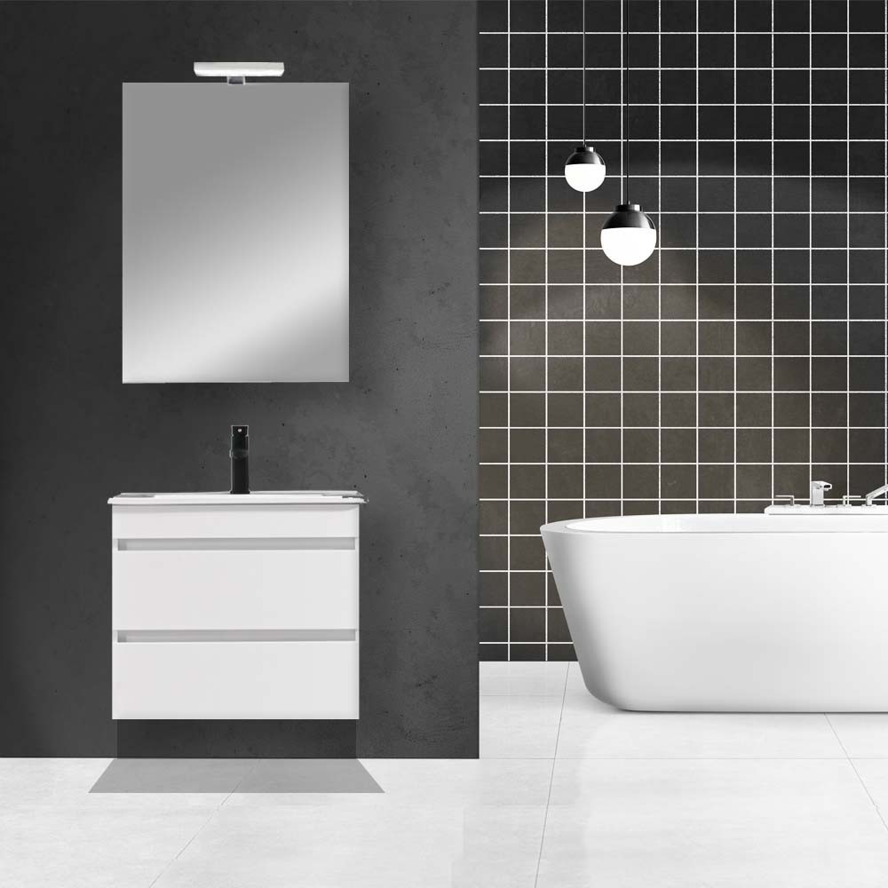 Az alsó bútorhoz emellett tartozik egy 60-as Cube tükör is. A termék magasfényű festett fronttal és korpusszal emellett színben passzoló élzárókkal van ellátva. A fürdőszoba bútor felfüggesztett kivitelben kapható.