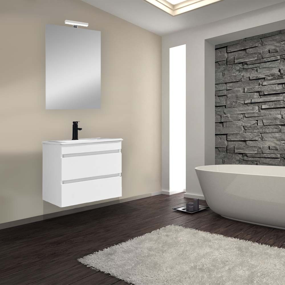 A csomag részét képzi egy méretben passzoló kerámia mosdó is, így ezt nemkell külön beszereznie. A mosdó elkészítésekor kiváló minőségű kerámiát alkalmaztak, ezzel garantálva az időtállóságot. A mélymedencével ellátott mosdóban egy csaptelepnek van kialakított hely.
