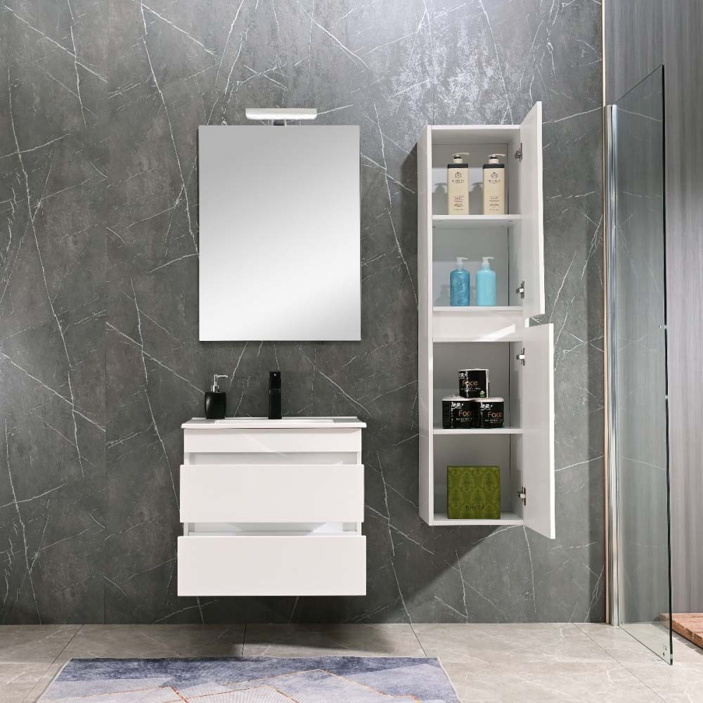 A funkcionalitás mellett természetesen a bútor megjelenésére is nagy figyelmet fordítottak. Magasfényű fehér színének és letisztult modern vonalainak köszönhetően harmóniát teremt az összes fürdőszoba hangulatában.