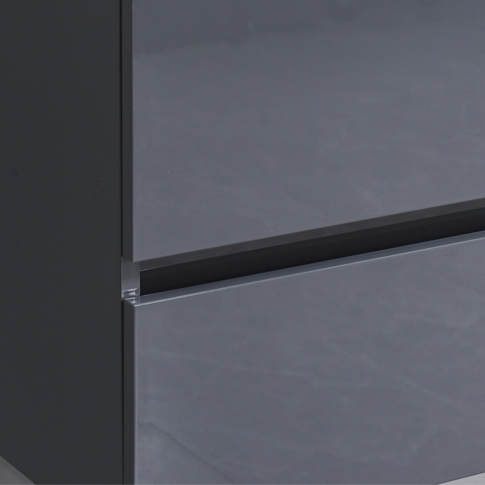 A funkcionalitás mellett természetesen a bútor megjelenésére is nagy figyelmet fordítottak. Magasfényű antracitszürke színének és letisztult modern vonalainak köszönhetően harmóniát teremt az összes fürdőszoba hangulatában.