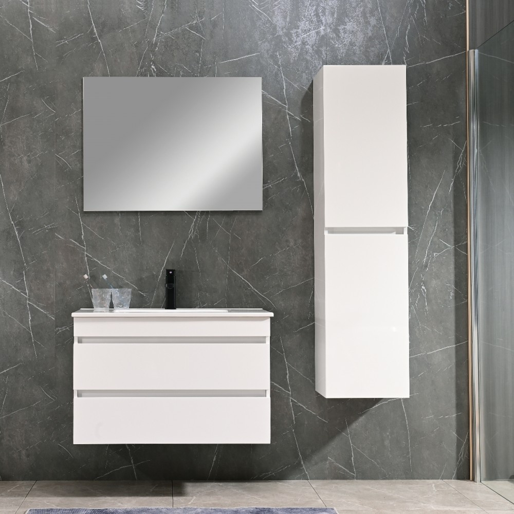 A fürdőszoba bútor kevés helyet foglal viszont rendelkezik két tágas fiókkal ahol kényelmesen elférnek a fürdőszobai pipere eszközök. Kevés helyigénye miatt kisebb fürdőszobák berendezésére is alkalmas, például panel lakásokban. A termék magasfényű festett fronttal és korpusszall emellett színben passzoló élzárókkal van ellátva. A fürdőszoba bútor felfüggesztet kivitelben kapható.