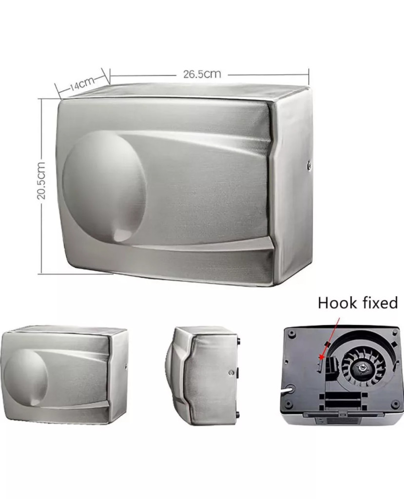 A kézszárító fali rögzítésű, a csomag tartalmazza a szükséges csavarokat és csavarkulcsot, így gyorsan és egyszerűen felszerelhető. A 1250 W-os teljesítmény gyors száradást biztosít, így jelentősen csökkenti a várakozási időt.