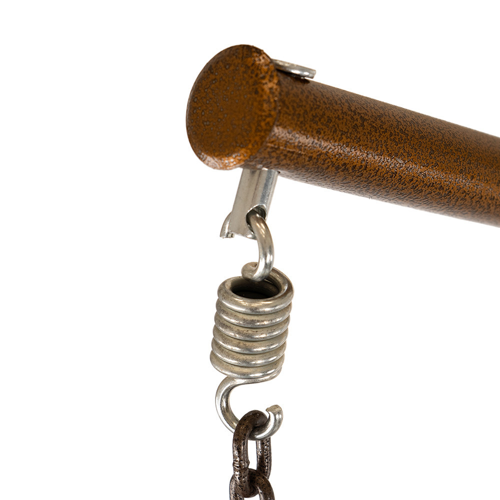 A Natal függőfotel szilárd alapjait a barna porszórt bevonattal ellátott vastag acélváz adja.
