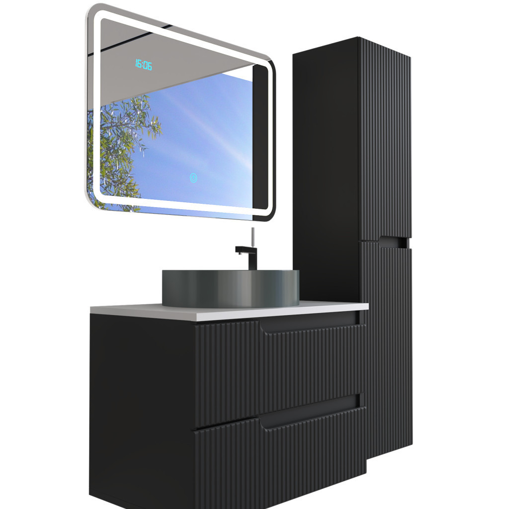 Az állítható polcok és zárt tárolórekeszek elegendő helyet biztosítanak törölközőknek, kozmetikumoknak, mosószereknek és fürdőszobai kellékeknek. A fali kivitel megkönnyíti a padló takarítását, és optikailag tágasabbá teszi a fürdőszobát – ideális kisebb helyiségekhez is.