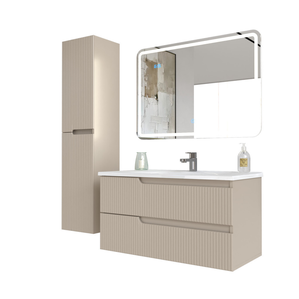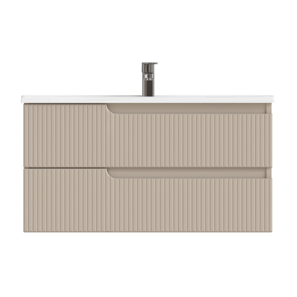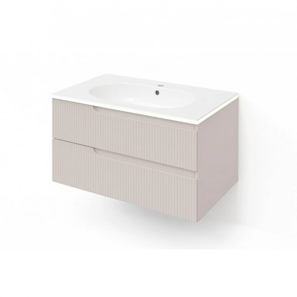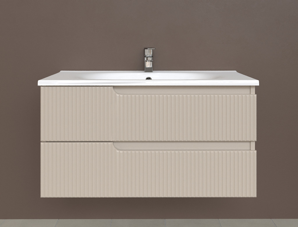 Piramida EURIDIKA fali fürdőszobabútor - műmárvány mosdóval -2 fiókos - PINO BÉZS - 100 x 48 x 53 cm