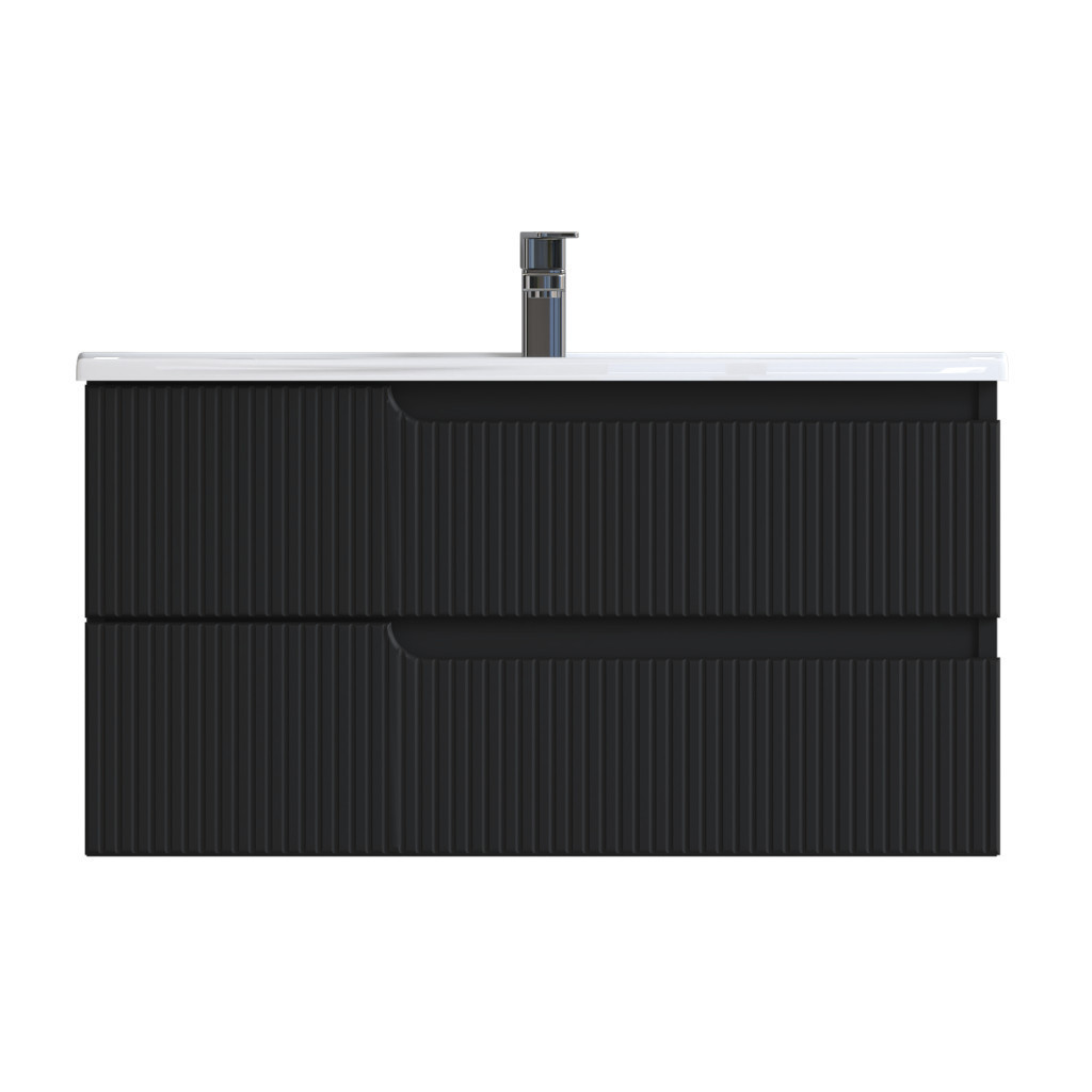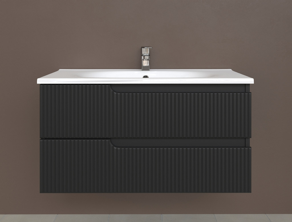Piramida EURIDIKA fali fürdőszobabútor - műmárvány mosdóval -2 fiókos - PINO FEKETE - 100 x 48 x 53