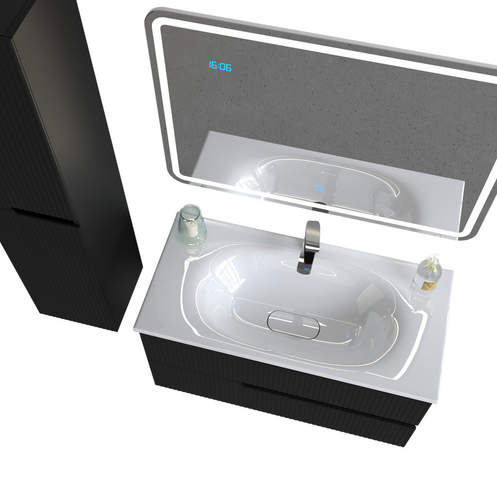 A Piramida EURIDIKA fali fürdőszobabútor öntött műmárvány mosdókagylóval érkezik – teljes megoldás egyetlen csomagban, amellyel azonnal rendezheti fürdőszobája kiegészítőit. Az 100 cm széles, pino fekete színű falra szerelhető szekrény magas minőségű MDF lapból készül, Soft Close csillapított zsanérokkal, és összeszerelt állapotban szállítjuk.