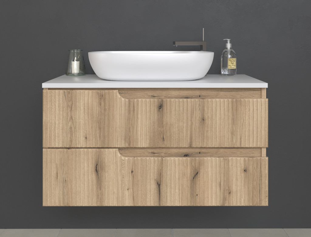 Piramida EURIDIKA fali fürdőszobabútor - mosdópult mosdó nélkül -2 fiókos - PINO TÖLGY - 100 x 48 x 53 cm