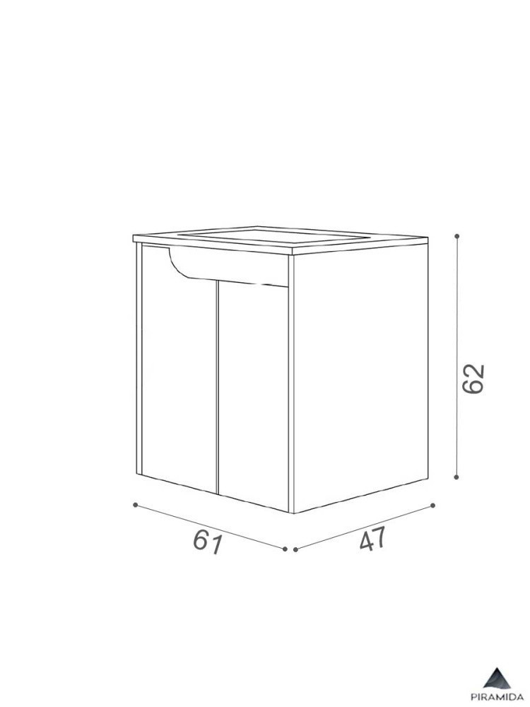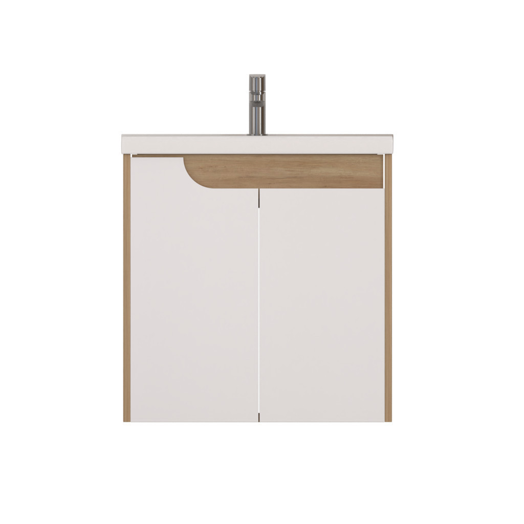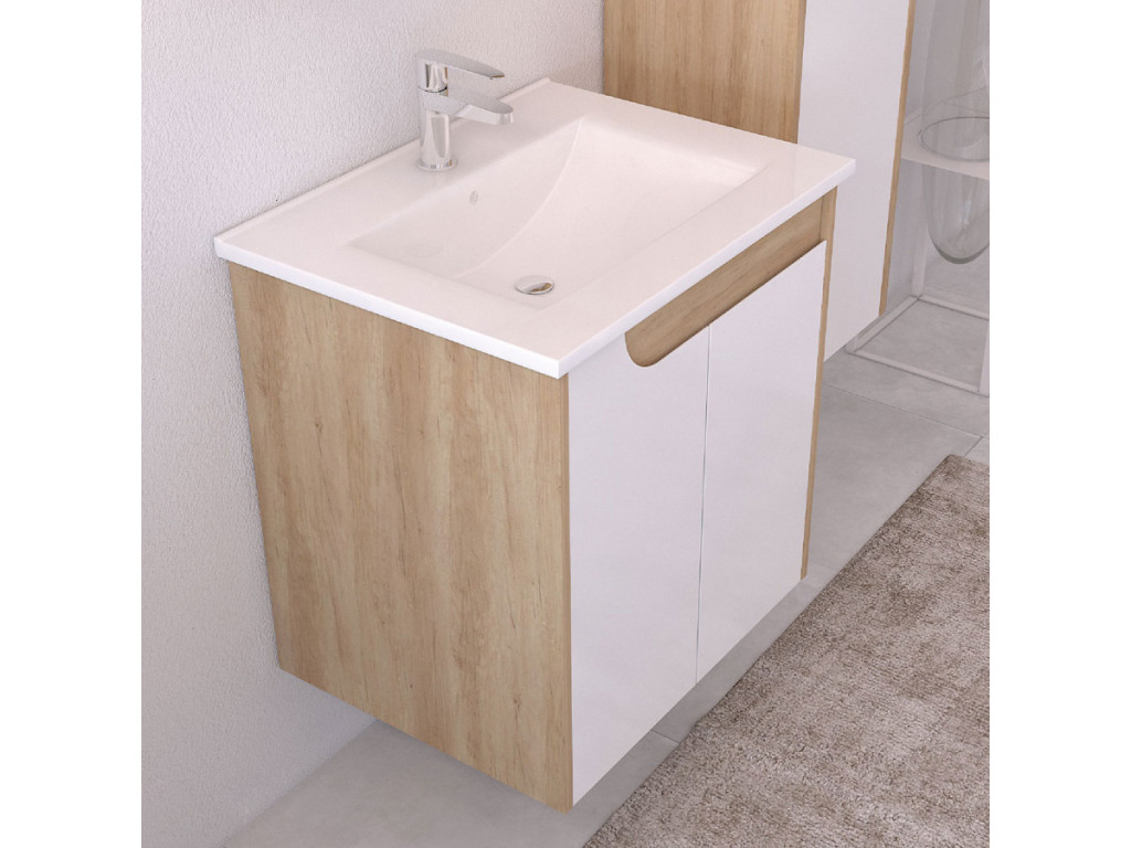 Piramida EURIDIKA fali fürdőszobabútor - műmárvány mosdóval -2 ajtós - FEHÉR-TÖLGY - 60 x 46 x 62 cm