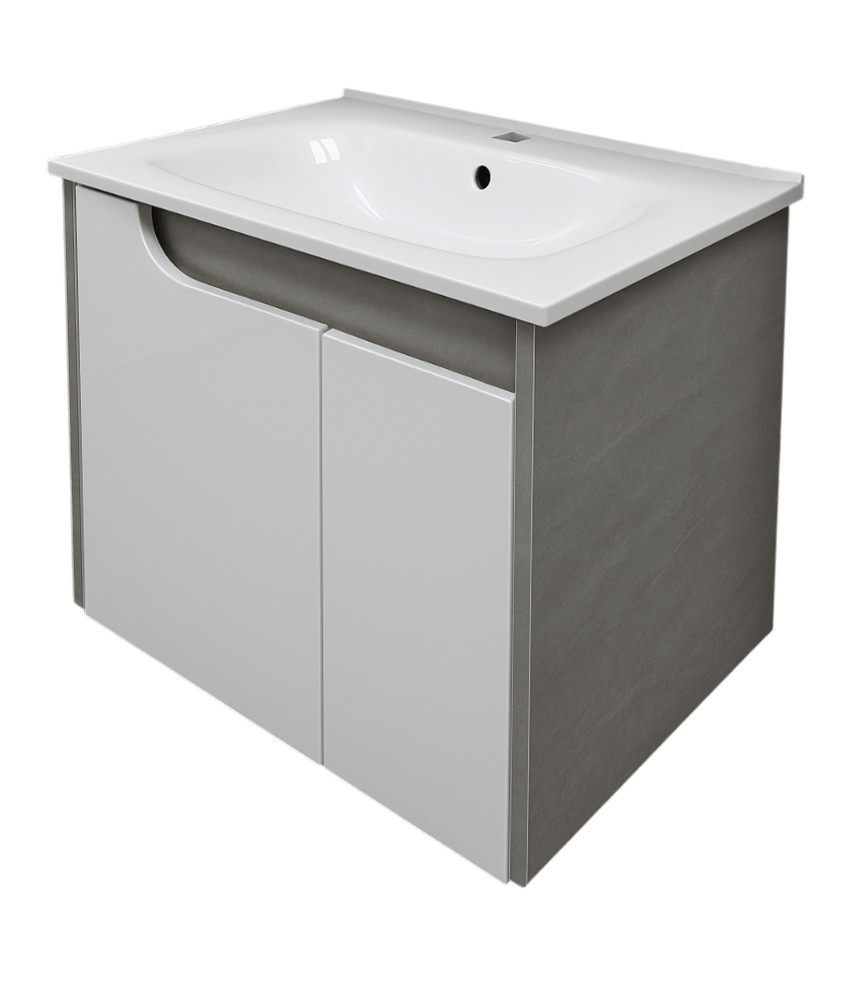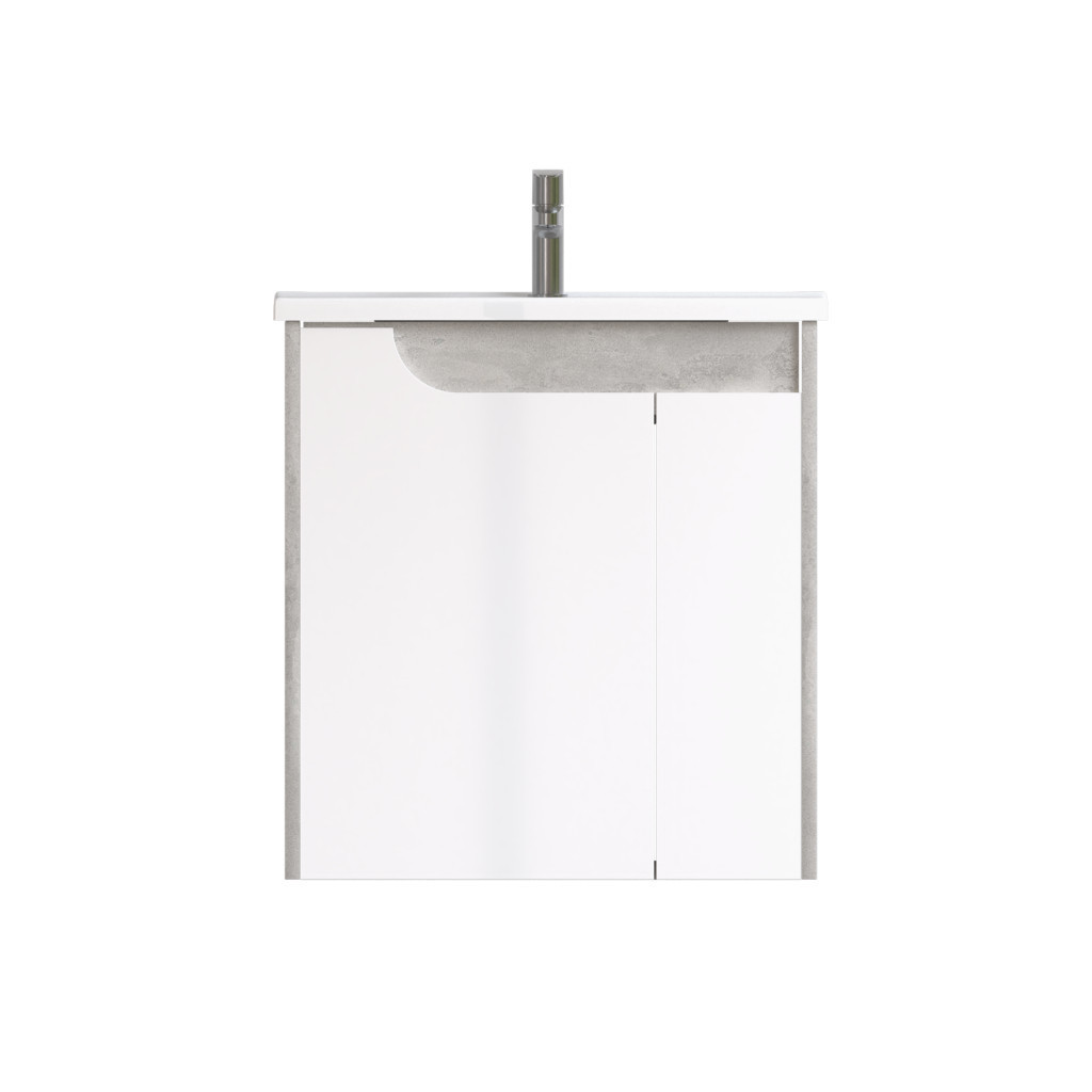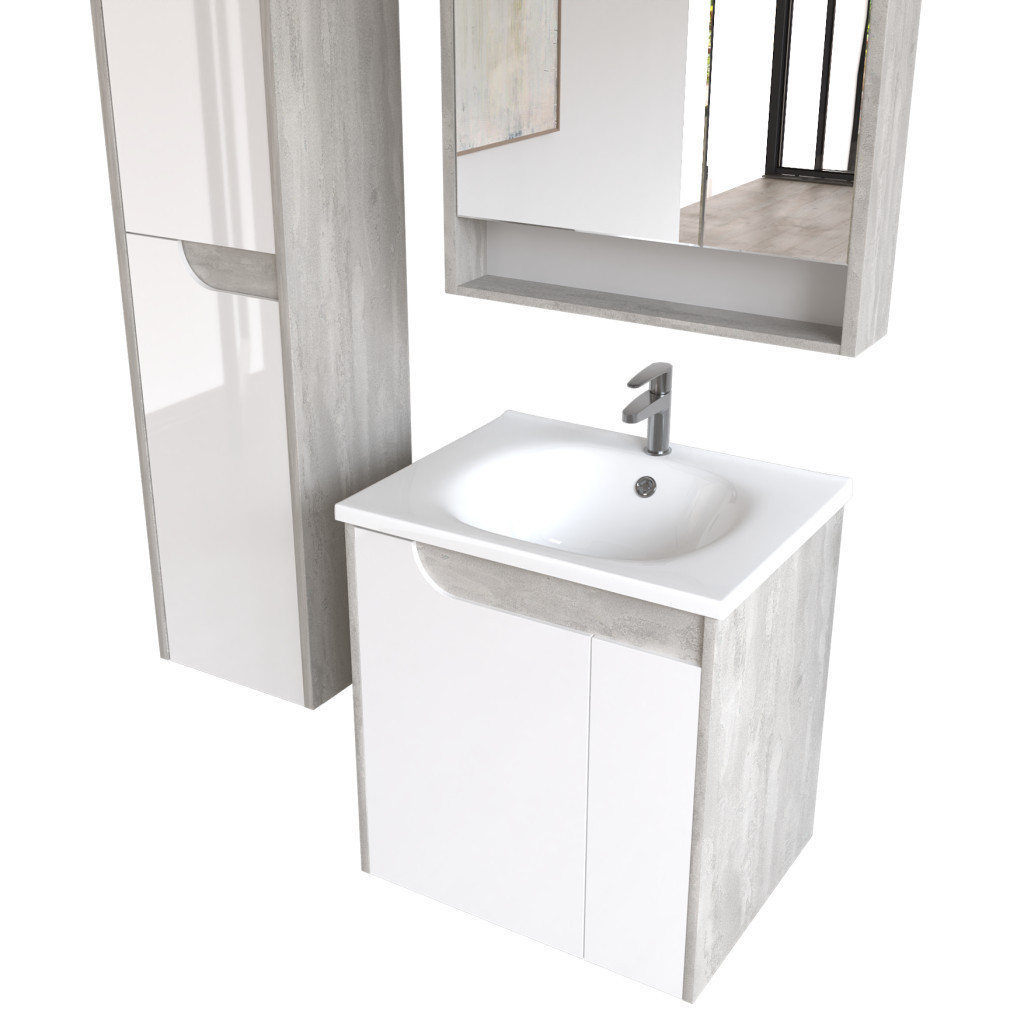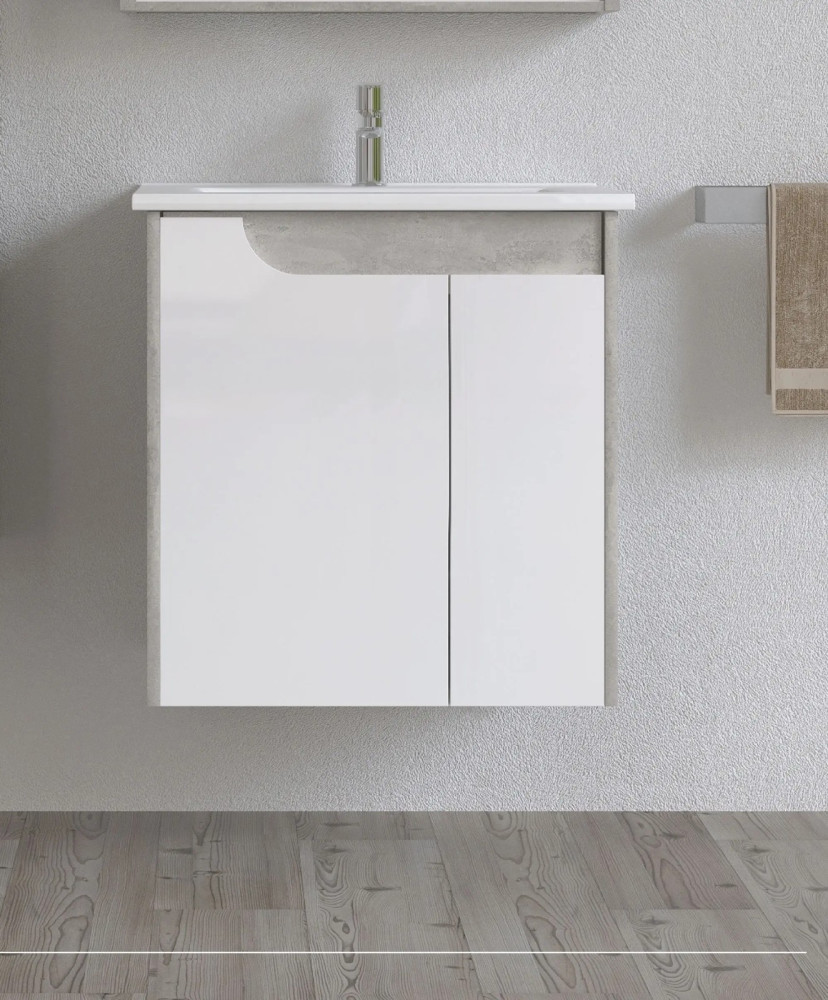 Piramida EURIDIKA fali fürdőszobabútor - műmárvány mosdóval -2 ajtós - FEHÉR-SZÜRKE - 65 x 48 x 62 cm