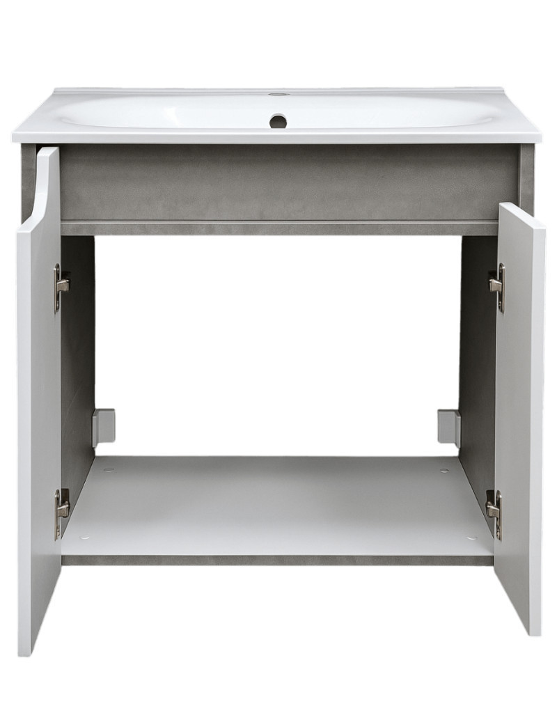 Nem kell külön mosdót keresnie – a szekrényhez méretarányos öntött műmárvány mosdókagyló is tartozik. A letisztult, modern forma bármilyen fürdőszobai stílushoz illeszkedik. A 2 ajtós belső tárhelye elegendő helyet biztosít minden fürdőszobai eszközének. A falra szerelt kialakítás megkönnyíti a takarítást és tágasabbá teszi a teret.