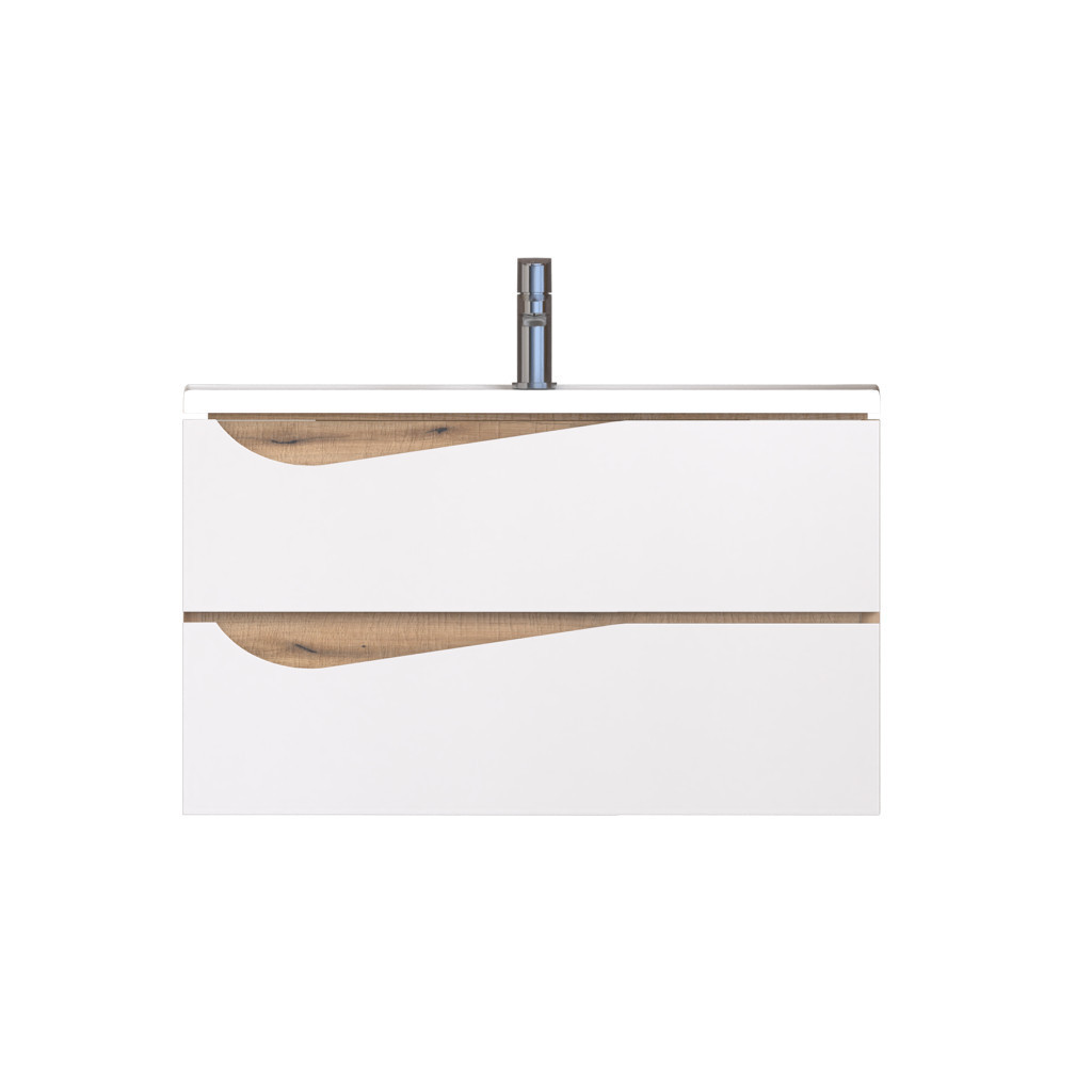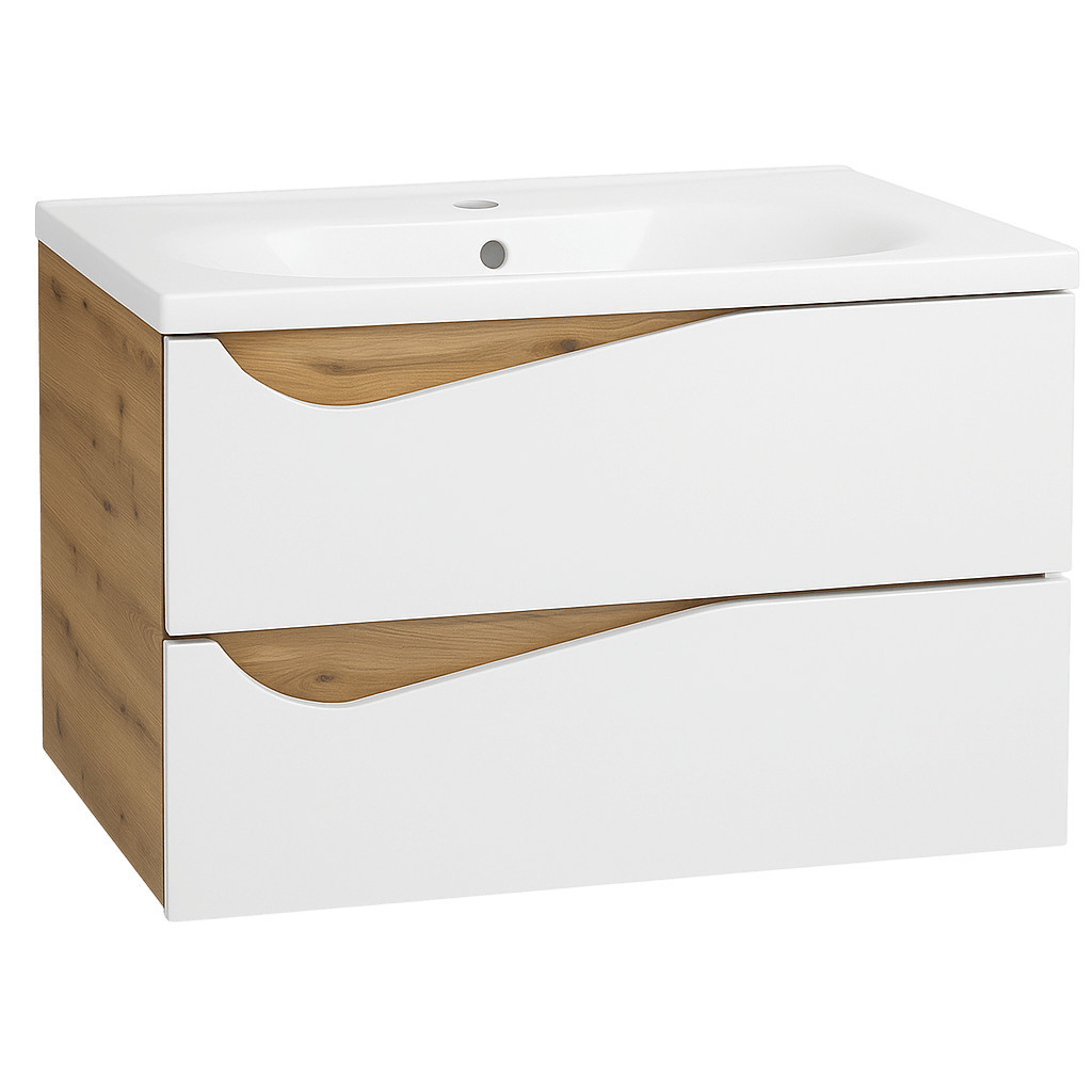 Piramida EURIDIKA fali fürdőszobabútor - műmárvány mosdóval -2 fiókos - ALPINFEHÉR-TÖLGY - 75 x 48 x 55 cm
