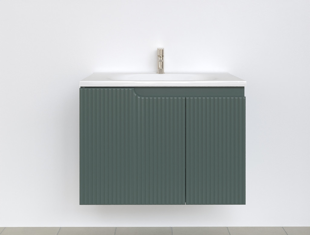 Piramida EURIDIKA fali fürdőszobabútor - műmárvány mosdóval -2 ajtós - PINO ZÖLD - 75 x 48 x 53 cm
