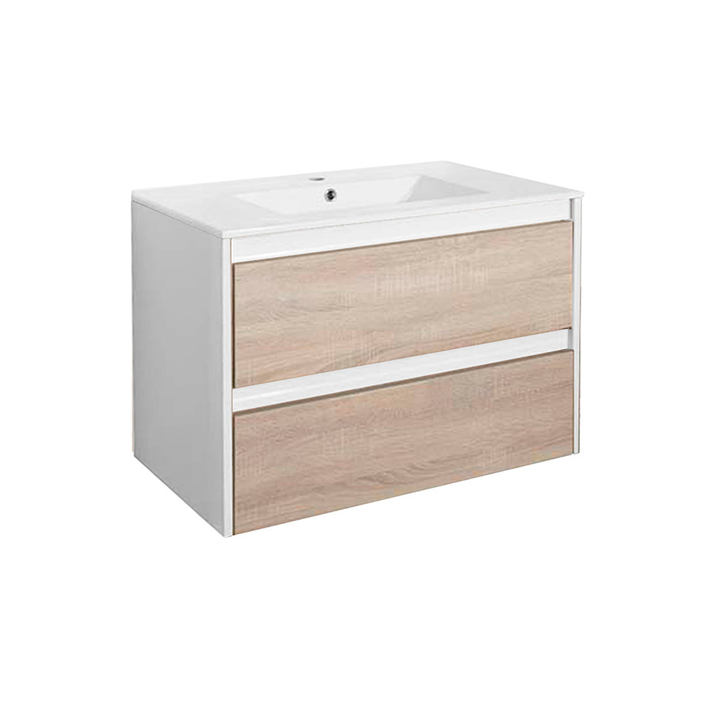 Leziter Porto 80 alsó szekrény mosdóval – fehér–sonoma tölgy