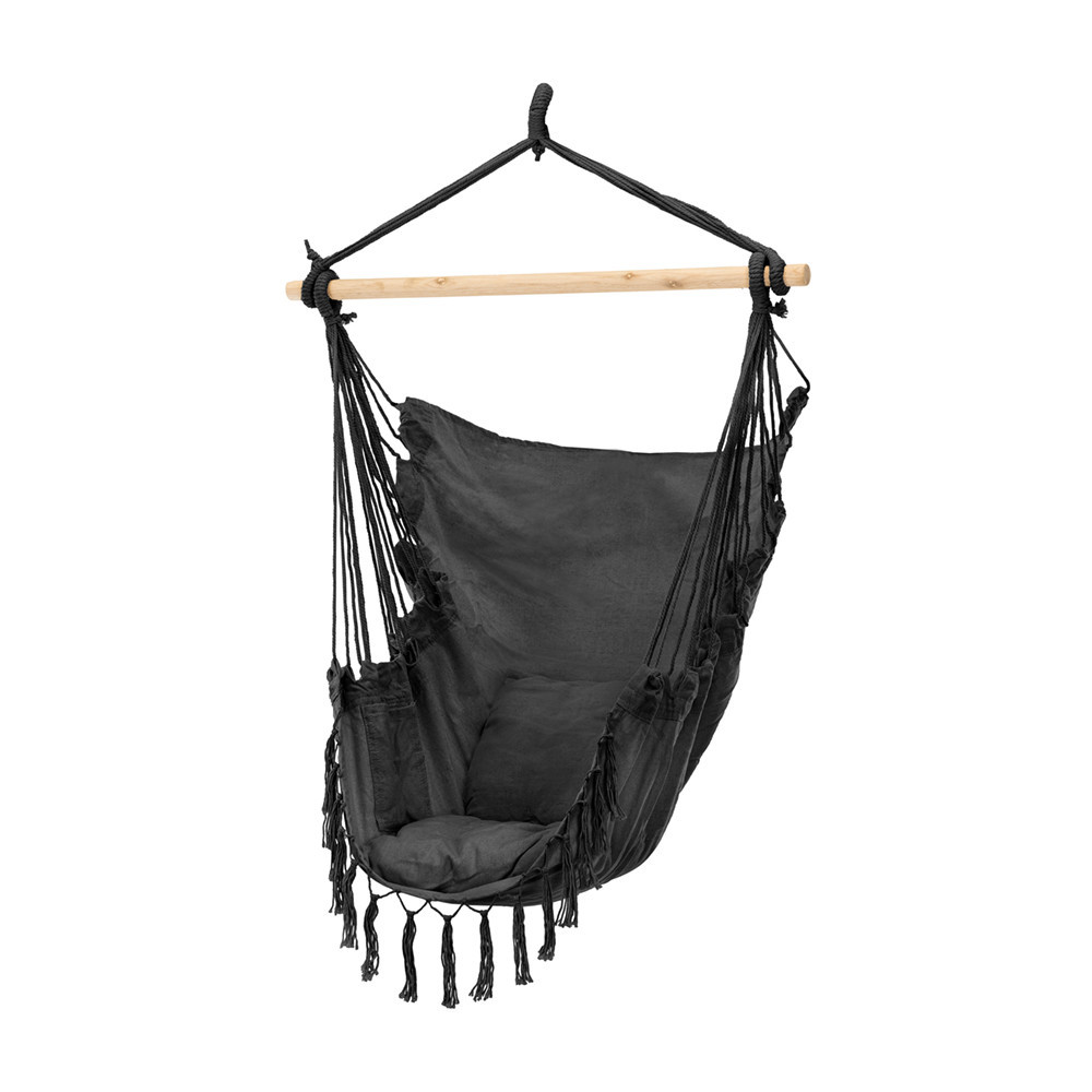 A Puerto függőfotel kiváló választás, ha az otthoni kikapcsolódásra vagy egy stílusos kültéri kiegészítőre vágysz. A 330gsm poliészter-pamut anyagú párnákkal, minőségi tömőanyaggal, és díszes bojttal ellátva a Puerto függőszék nemcsak esztétikus, hanem rendkívül kényelmes is.