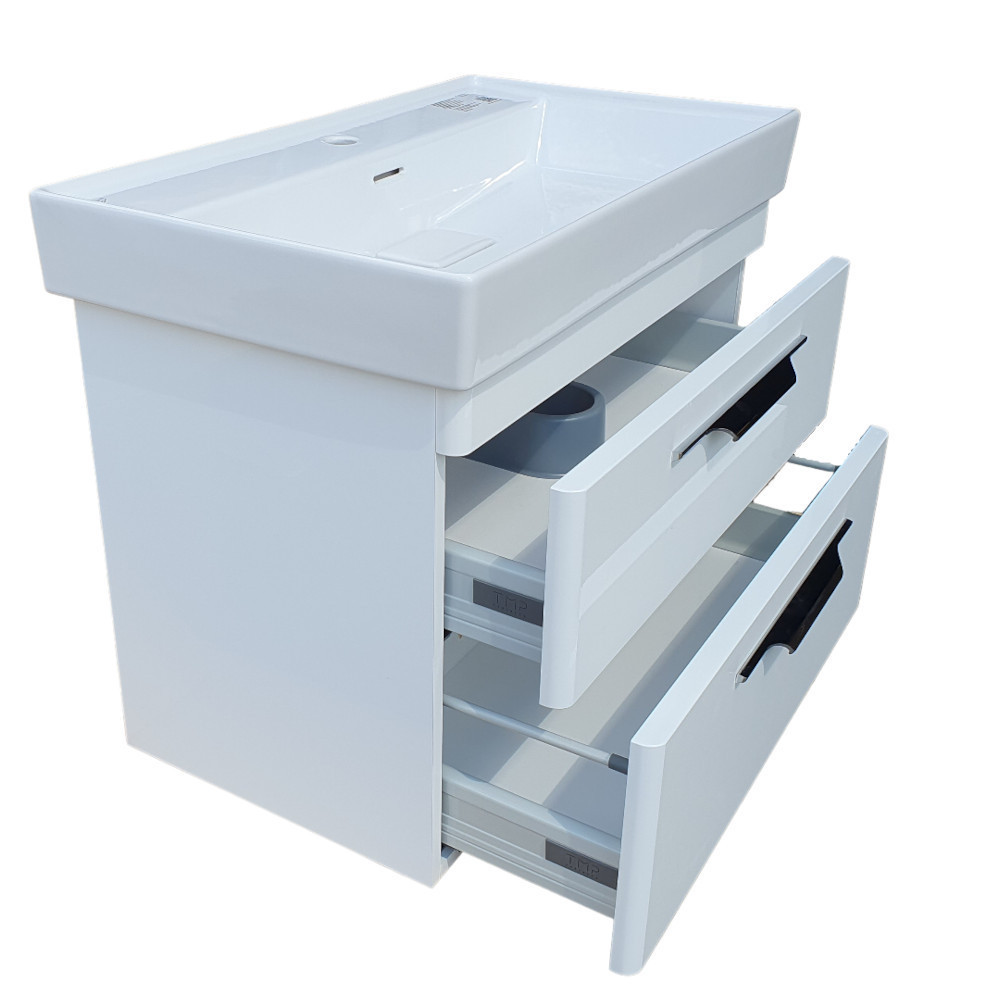 A TMP LUX 100 fali függesztett fürdőszobabútor igazi egyediséget varázsol a fürdőszobába! Praktikus fromatervezésének köszönhetően két tágas fiókkal rendelkezik, ahol kényelmesen elférnek a fürdőszobai eszközök. A termék magasfényű fehér színben kapható és felfüggesztet kivitelben kapható.