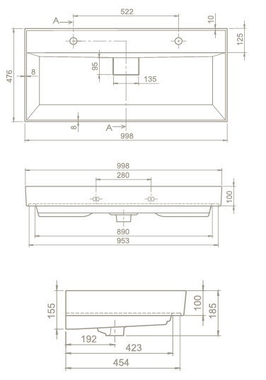 TMP TRIO lábon álló fürdőszobabútor CeraStyle SHARP FEKETE mosdóval - DUPLA csaplyukas - 100 x 48 cm