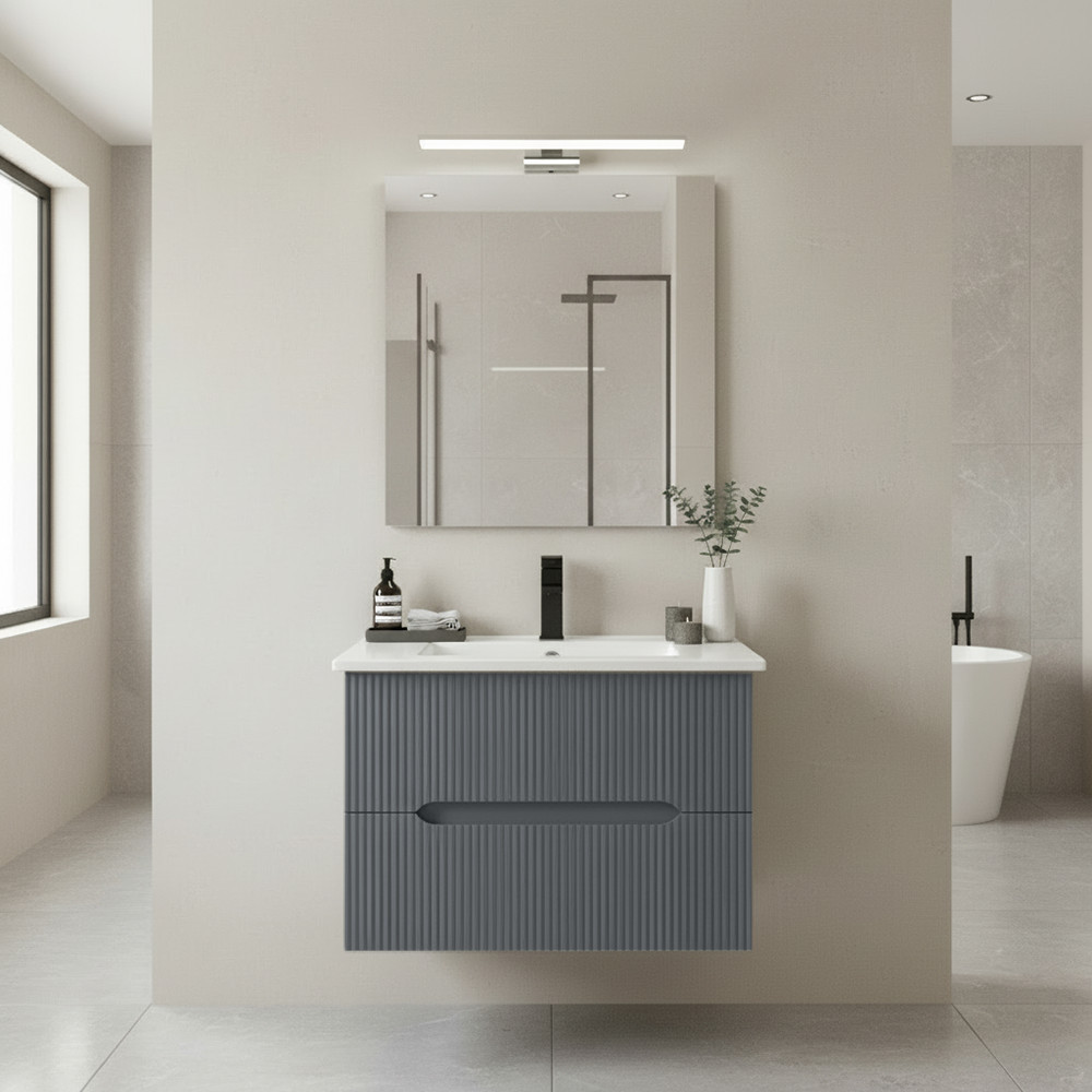 A Leziter Trent fürdőszobabútor harmonikusan ötvözi a látványt és a praktikumot. A bordázott előlap letisztult, modern karaktert ad, miközben az integrált fogantyú kényelmes használatot tesz lehetővé. A fali rögzítés könnyed megjelenést teremt, a padló takarítása pedig gyorsabbá válik. A kerámia mosdó tartós, időtálló, ellenáll a mindennapos igénybevételnek és egyszerűen tisztán tartható.