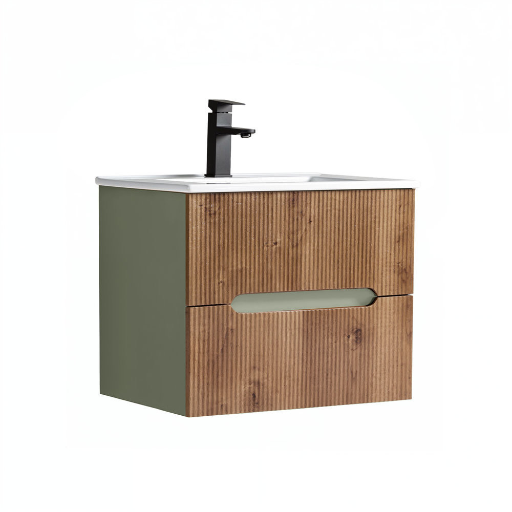 Leziter Trent Fürdőszobabútor 60 cm kerámia mosdóval (2 fiókos) Olivazöld - Sunset tölgy