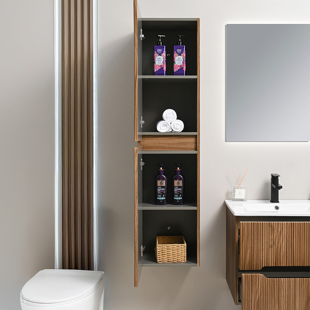 A Leziter Trent függesztett oldal szekrény letisztult, modern megjelenésével tökéletes kiegészítője bármely Trent fürdőszobabútornak – vagy önálló tárolóként is ideális választás. A bordázott frontok harmonikusan illeszkednek a minimalista és skandináv stílusú enteriőrökbe. Praktikus méreteinek köszönhetően kényelmes tárolóhelyet kínál anélkül, hogy értékes padlófelületet foglalna.