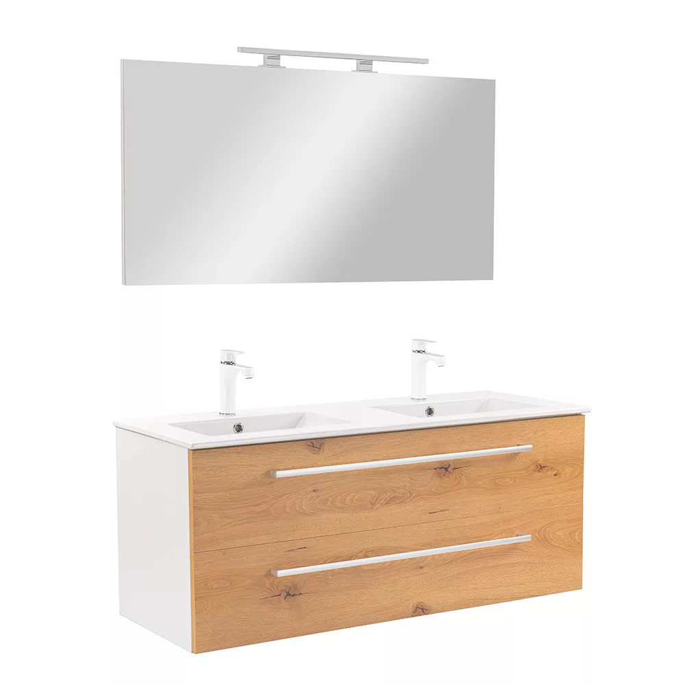 Vario Clam 120 komplett fürdőszoba bútor fehér-tölgy - stílusos és modern fürdőszobabútor