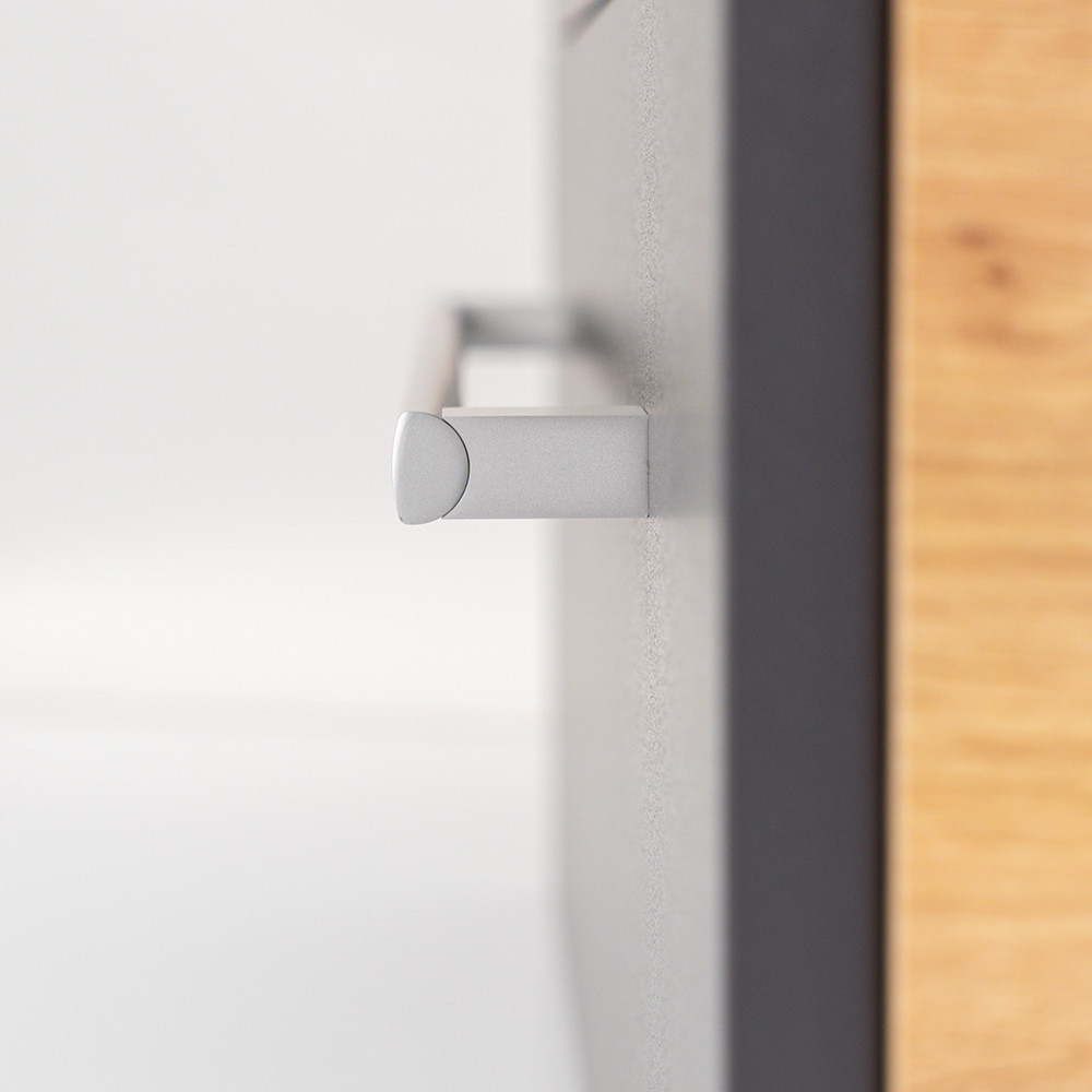 A Vario Clam 60 komplett fürdőszobabútor egy stílusos és praktikus választás modern fürdőszobához. Kompakt méretei ideálisak kisebb és közepes méretű fürdőszobákba is, és a fém fogantyú profil patinás hatást, a tölgy-antracit színű dizájn elegáns megjelenést kölcsönöz a térnek. A csillapítós fiókzáródás és a felfüggesztett kivitel a kényelmet és könnyű tisztántartást szolgálja, míg a minőségi anyagok hosszú élettartamot biztosítanak.