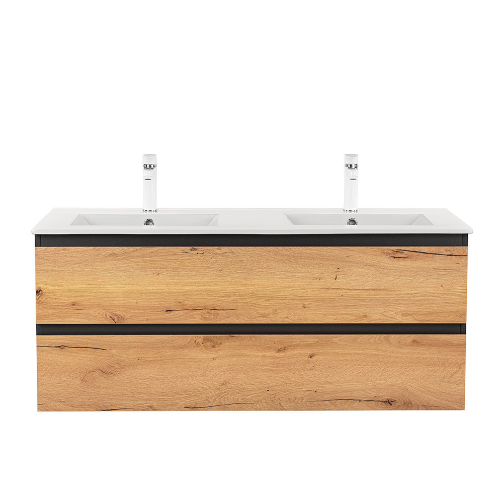 A bútor flat design kerámia mosdóval érkezik, amely kétmedencés kivitelű. Modern, esztétikus és könnyen tisztítható.