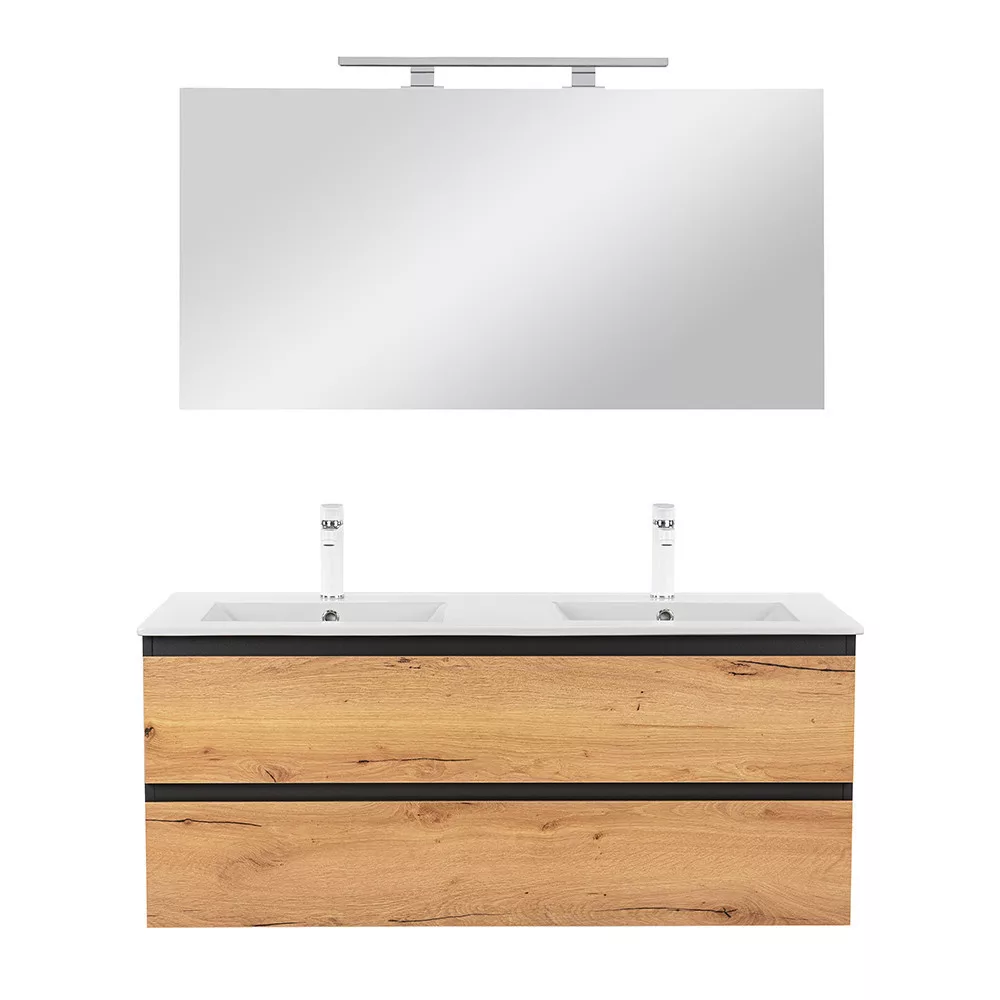A bútor flat design kerámia mosdóval érkezik, amely kétmedencés kivitelű. Modern, esztétikus és könnyen tisztítható.