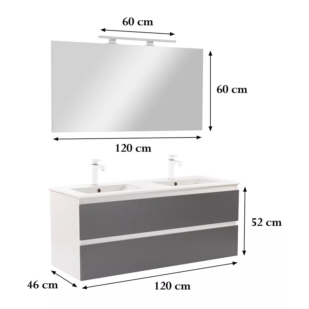 Vario Forte 120 komplett fürdőszoba bútor fehér-antracit - stílusos és modern fürdőszobabútor