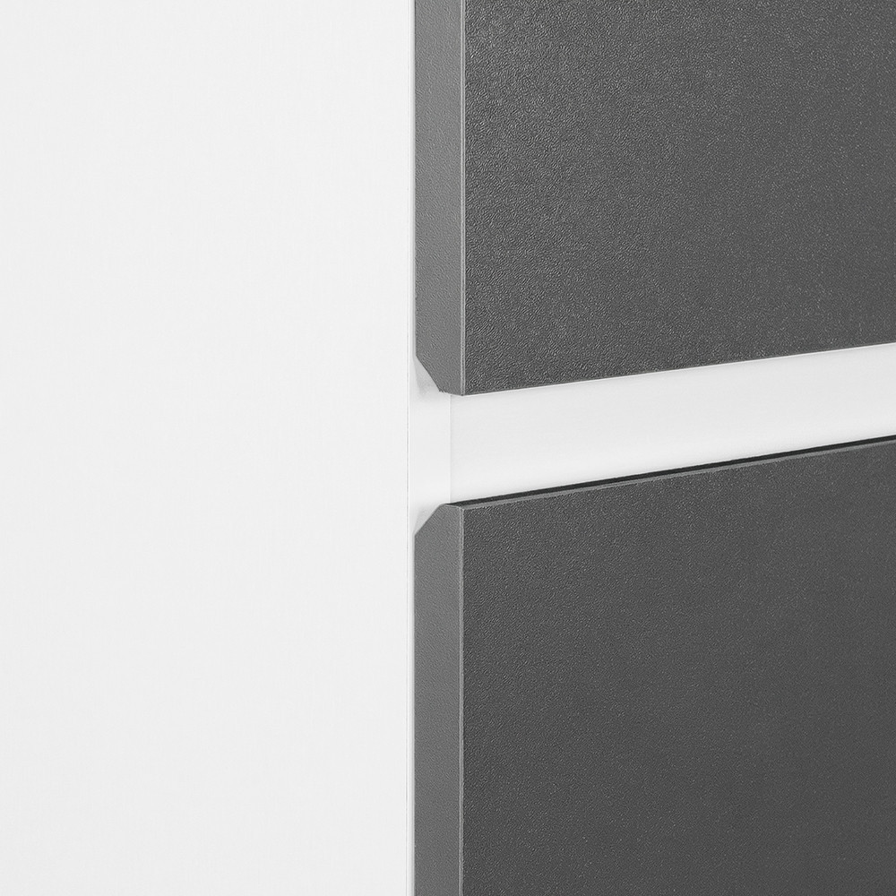 A Vario Forte 35 függesztett oldal szekrény ideális kiegészítője minden modern fürdőszobának. Remek választás, ha extra tárolóhelyre van szükség kompakt méretben a dizájnt és a minőséget is szemelőtt tartva. Az fehér korpusz és antracit front időtlen, letisztult megjelenést biztosít, amely harmonikusan illeszkedik a Vario Forte család további elemeihez.