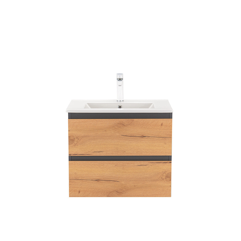A Vario Forte 60 komplett fürdőszobabútor egy stílusos és praktikus választás modern fürdőszobához. Kompakt méretei ideálisak kisebb és közepes méretű fürdőszobákba is, a 45 fokos élzáródás modern hatást, az antracit-tölgy színű dizájn elegáns megjelenést kölcsönöz a térnek. A csillapítós fiókzáródás és a felfüggesztett kivitel a kényelmet és könnyű tisztántartást szolgálja, míg a minőségi anyagok hosszú élettartamot biztosítanak.