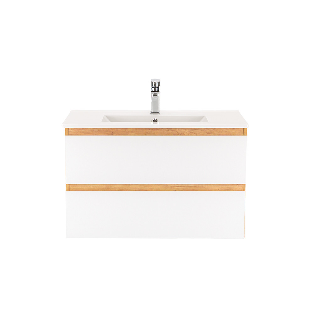 A Vario Forte 80 komplett fürdőszobabútor egy stílusos és praktikus választás modern fürdőszobához. Kompakt méretei ideálisak kisebb és közepes méretű fürdőszobákba is, a 45 fokos élzáródás modern hatást, a tölgy-fehér színű dizájn elegáns megjelenést kölcsönöz a térnek. A csillapítós fiókzáródás és a felfüggesztett kivitel a kényelmet és könnyű tisztántartást szolgálja, míg a minőségi anyagok hosszú élettartamot biztosítanak.