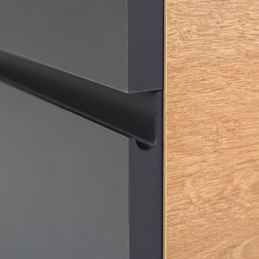 - Kifinomult színvilág: A tölgy korpusz és az antracit front kombinációja elegáns és időtálló megjelenést kölcsönöz a bútornak.