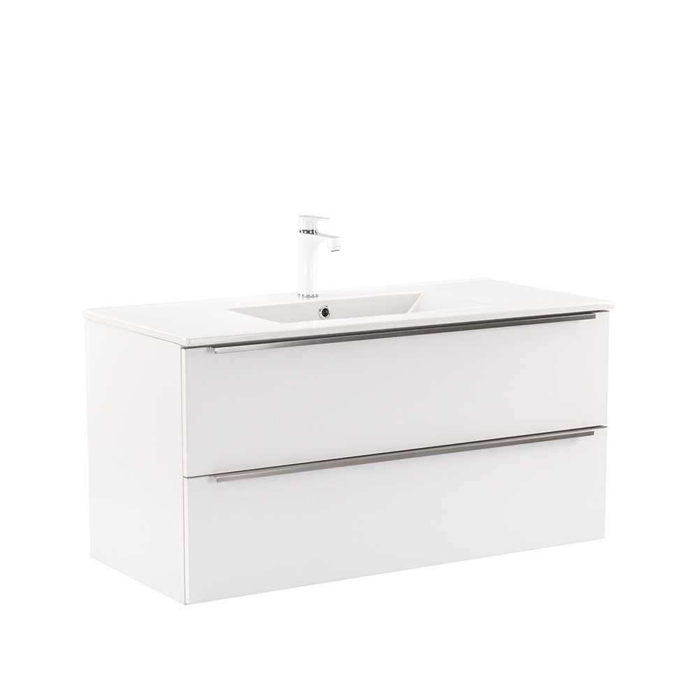 - Elegáns és praktikus mosdó: A bútor flat design kerámia mosdóval érkezik, amely egy medencés kivitelű. Modern, esztétikus és könnyen tisztítható.