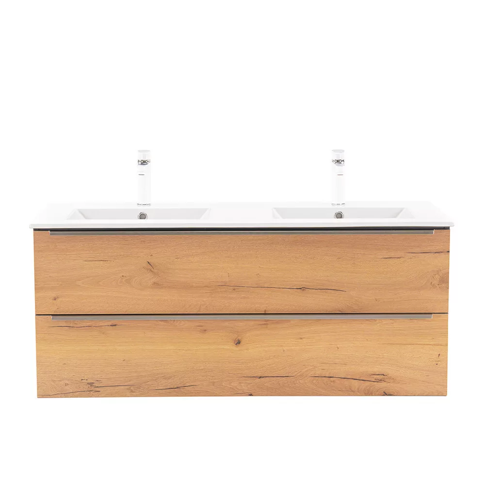 - Elegáns és praktikus mosdó: A bútor flat design kerámia mosdóval érkezik, amely kétmedencés kivitelű. Modern, esztétikus és könnyen tisztítható.