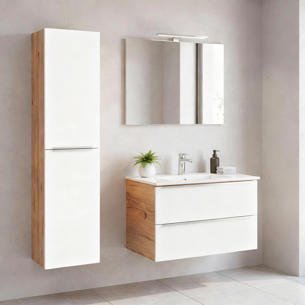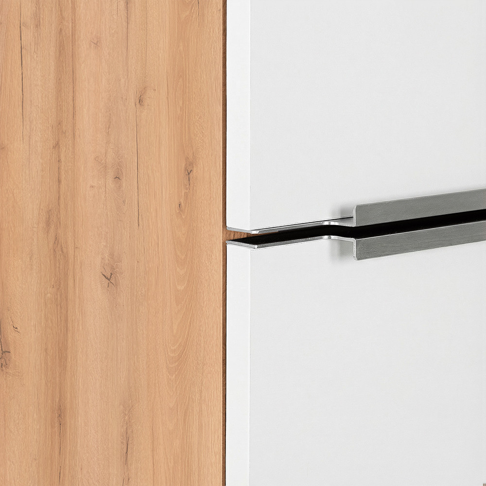 A Vario Trim 35 függesztett oldal szekrény ideális kiegészítője minden modern fürdőszobának. Remek választás, ha extra tárolóhelyre van szükség kompakt méretben a dizájnt és a minőséget is szem előtt tartva. Az tölgy korpusz és fehér front időtlen, letisztult megjelenést biztosít, amely harmonikusan illeszkedik a Vario Trim család további elemeihez.