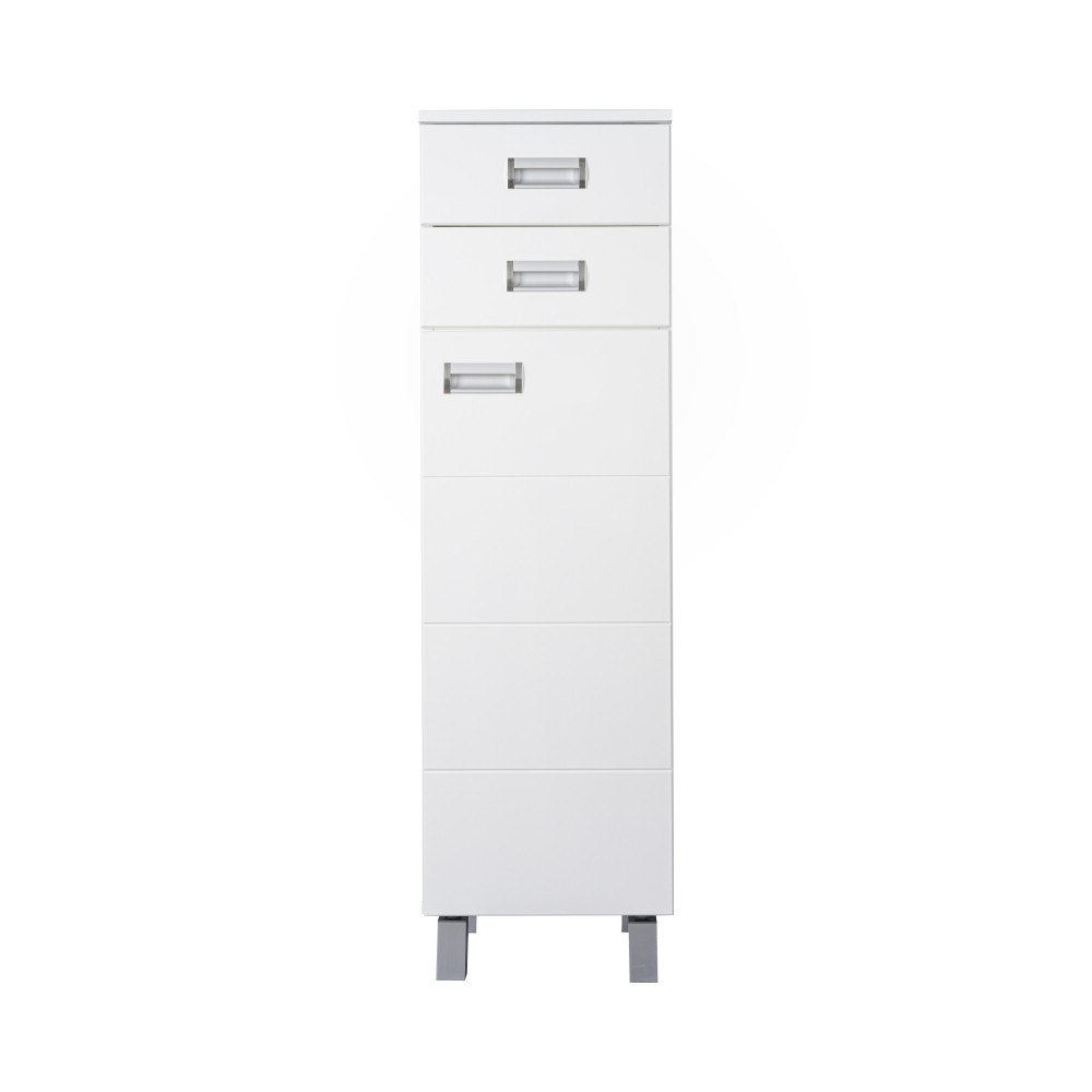 A 35 cm magas szekrény ideálisan elhelyezhető mosdó mellé, mosógép oldalára, vagy a fürdőszoba sarokrészébe. A mindössze 120 cm mélységnek köszönhetően szűk fürdőszobákba, panellakásokba is tökéletesen beilleszthető.