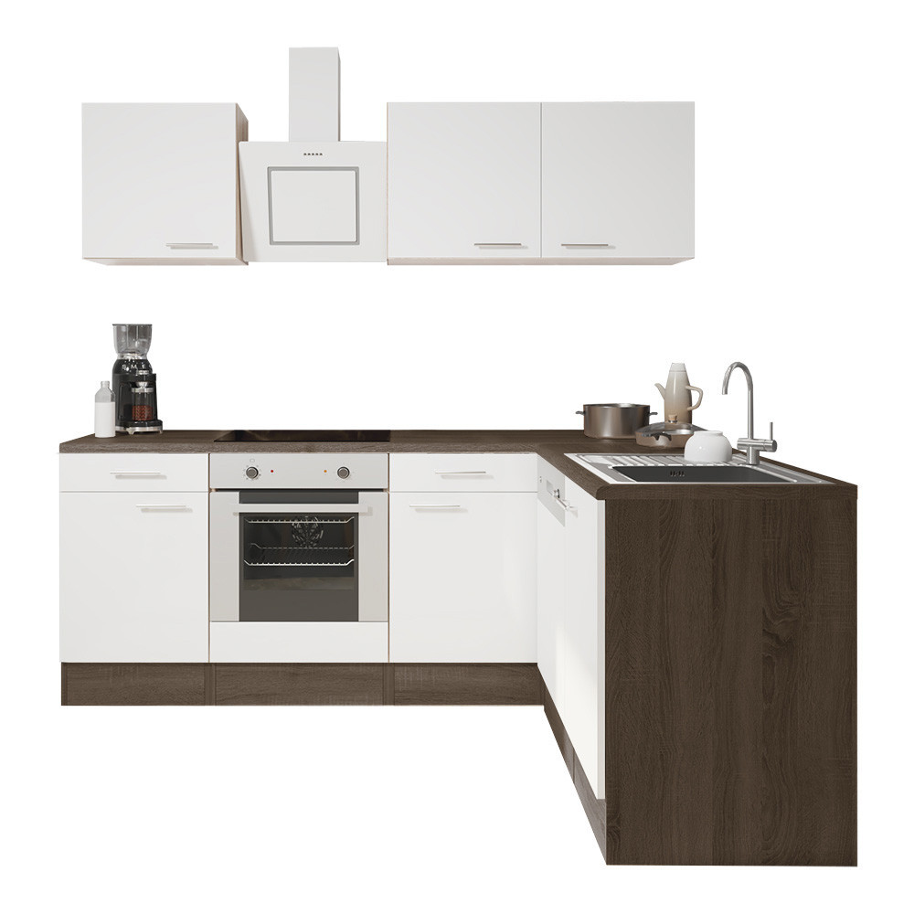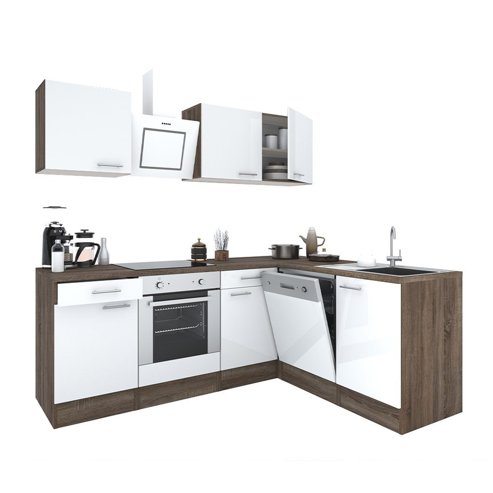 Yorki 220 sarok konyhablokk yorki tölgy korpusz, selyemfényű fehér fronttal. A tökéletes konyha megteremtője!