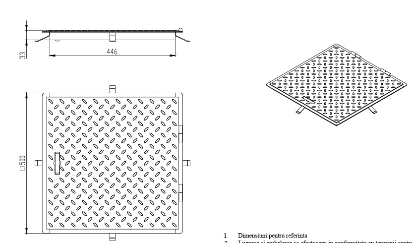 fedlap Metal festett URBAN Access négyzetes 500x500 PL.440x440 Hext.33 gyalogos fogantyúval (5000.4241-50)