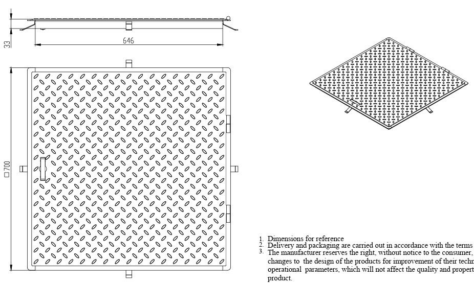 fedlap Metal festett URBAN Access négyzetes 700x700 PL.640x640 Hext.33 gyalogos fogantyúval (5000.4241-70)