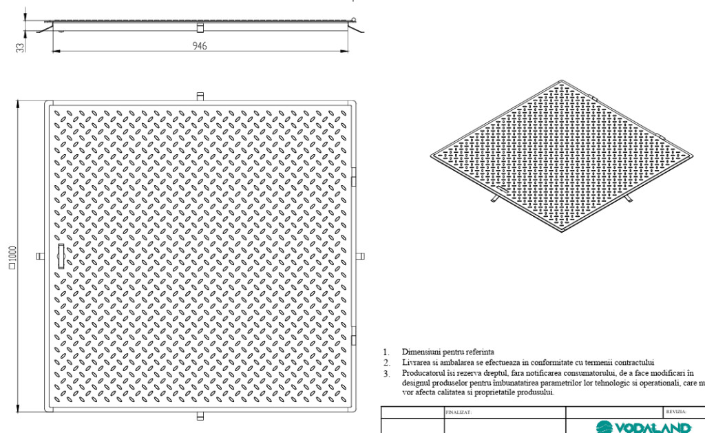 fedlap OZ URBAN Access négyzetes 1000x1000 PL.946x946 Hext.33 gyalogos fogantyúval (5000.4241-100-Z)