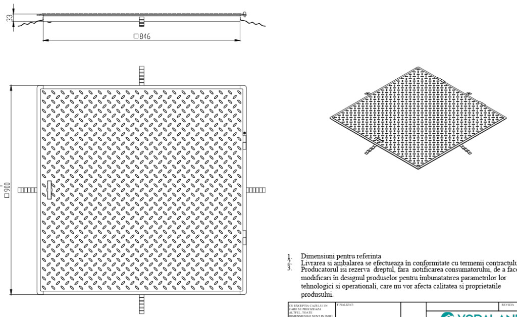 fedlap OZ URBAN Access négyzetes 900x900 PL.846x846 Hext.33 gyalogos fogantyúval (5000.4241-90-Z)