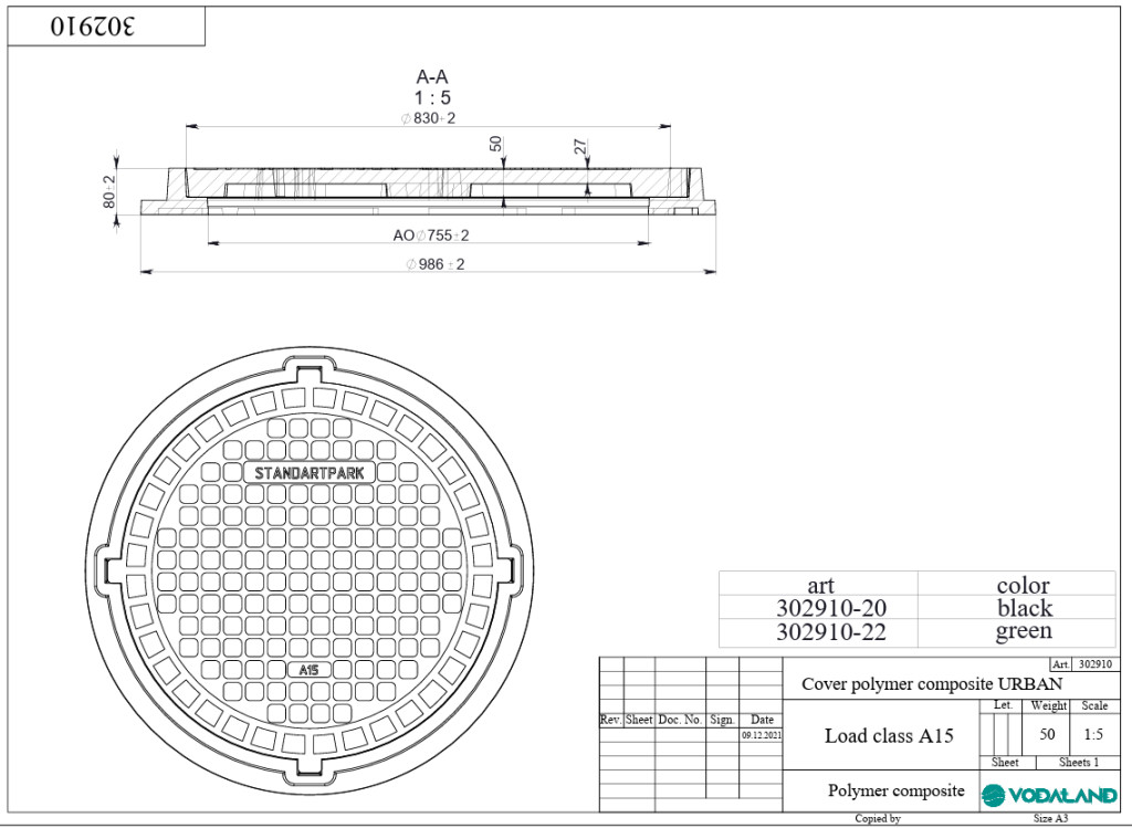 fedlap POLIMER COMPOZIT URBAN fekete kerek könnyű forgalmú D.986 PL.755 Hext.80 A15 (302910-20)