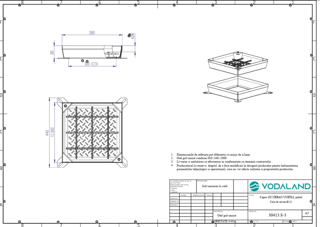 fedlap OZ URBAN UNIFILL rejtett négyzetes 380x380 PL.300x300 Hext.80 Hin.40 zárral B125 (30413.8-3)