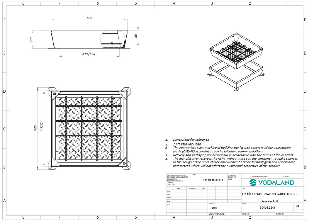 fedlap OZ URBAN UNIFILL rejtett négyzetes 500x500 PL.400x400 Hext.120 Hin.80 zárral B125 (30414.12-3)