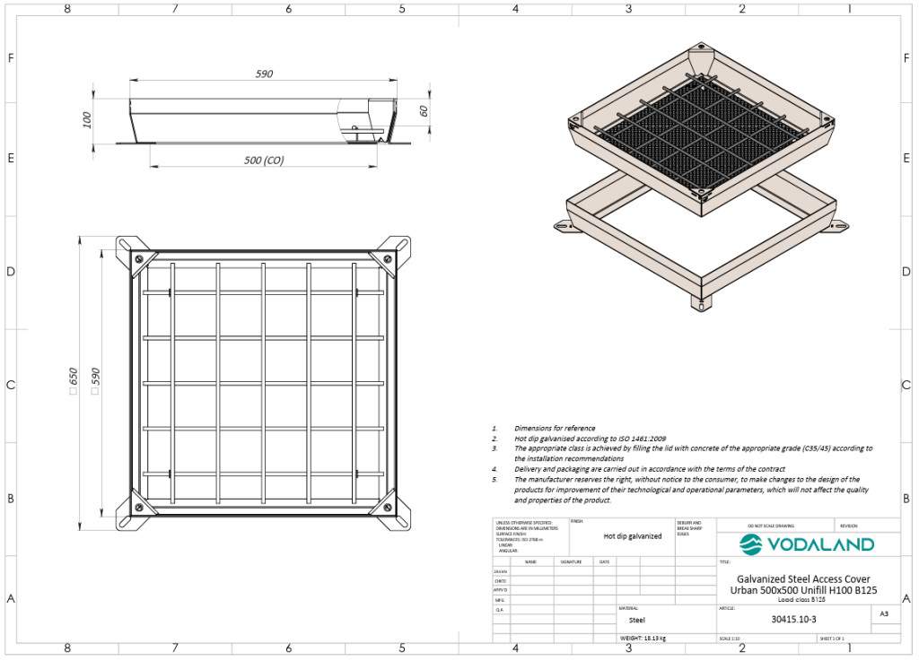 fedlap OZ URBAN UNIFILL rejtett négyzetes 590x590 PL.500x500 Hext.100 Hin.60 zárral B125 (30415.10-3)